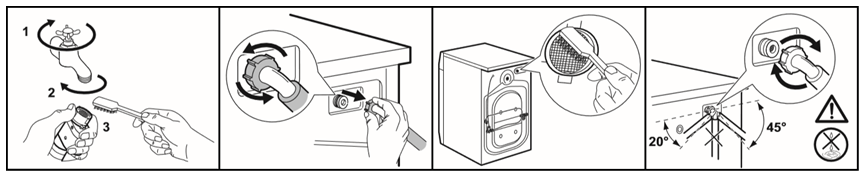 - Wenn ein Filter im Wasserventil verbaut ist (dort, wo der Einlaufschlauch an die Waschmaschine angeschlossen wird), so sollte dieser ebenfalls sauber sein.