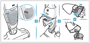1. Assurez-vous que le bac à poussière ne soit pas complètement rempli de saleté et de poussière, le vider et le nettoyer si nécessaire (voir