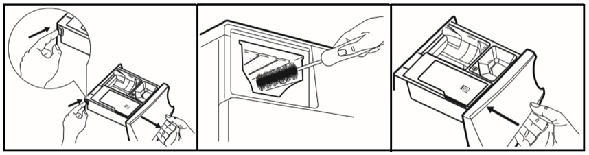 - La rimozione del cassetto del detersivo può variare a seconda del modello, fate riferimento al vostro per un aiuto.