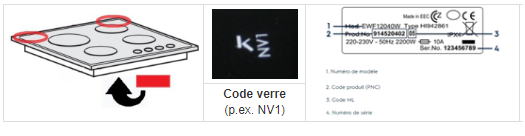 Si les conseils ci-dessus ne vous aident pas, nous vous recommandons de prendre rendez-vous avec un technicien. Veuillez contacter le service clientèle d'Electrolux, préparez les données suivantes sur l'appareil. Numéro de modèle, numéro de produit (PNC), numéro ELC et numéro de série. Ces informations se trouvent sur la plaque signalétique de l'appareil. La plaque signalétique se trouve à l'arrière de la table de cuisson ou sur la carte de garantie. Si vous ne disposez d'aucune de ces données, le numéro de verre à 3 ou 4 chiffres peut vous aider. Vous le trouverez dans les deux coins arrière.