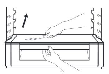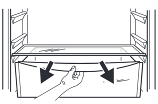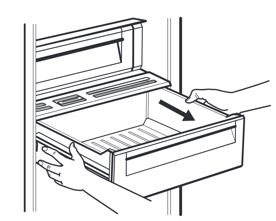 1.Halten Sie die Schublade zusammen mit der Glasabdeckung des ExtraChill und ziehen Sie sie zu sich hin.
