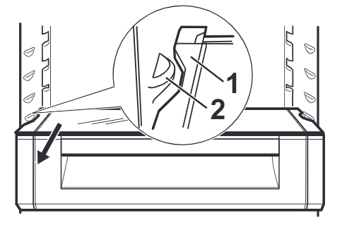 3. Halten Sie die Vorderseite der Schublade (2) angehoben, während Sie die Schublade hineinschieben.