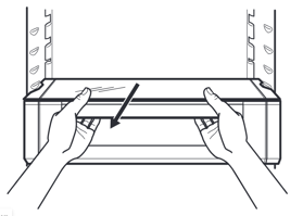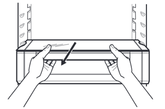 2. Sobald Sie das Ende der Läufer erreicht haben, heben Sie die Vorderseite der Schublade leicht an und entfernen Sie sie aus dem Gerät.