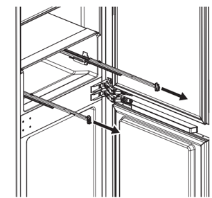 2. Schieben Sie die Schienen in den Schrank, um Schäden am Gerät beim Schließen der Tür zu vermeiden.